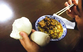 加班餐白菜豆腐燉粉條,吃起來分外香