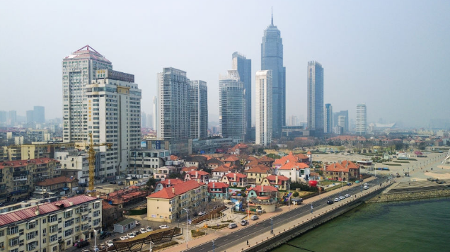 煙臺(tái)市城區(qū)(無(wú)人機(jī)照片)。新華社記者 徐速繪 攝